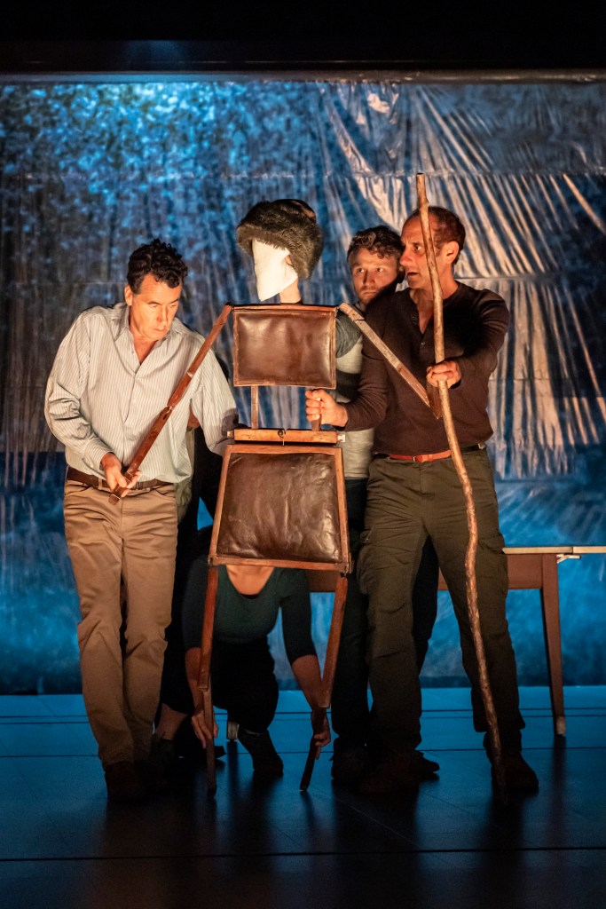 Michael Levine’s set turns a speeding train into bars, bedrooms and the Tirolean ridge from which the iceman is chiselled free. There is good work from video designer Roland Horvath (for rocafilm) too in creating kinetic effects across the stage.